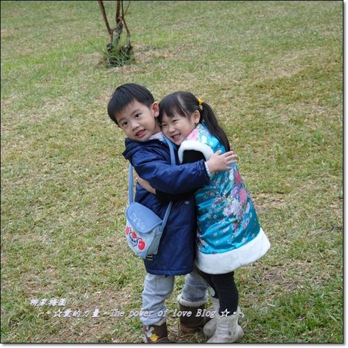 呵呵我們這天在草地上奔跑玩得很開心