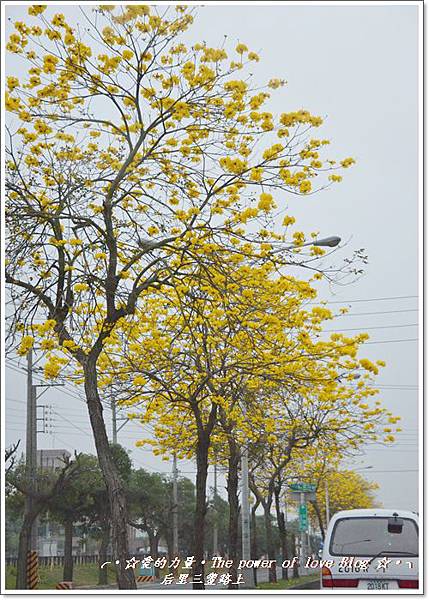 看著一整排滿開的黃風鈴